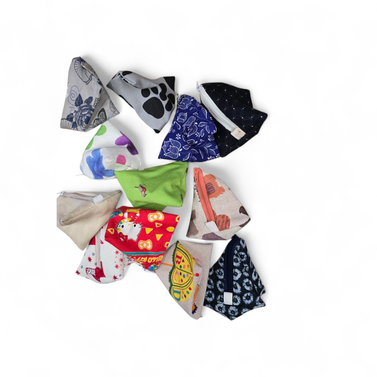 Újrahasznált ÖKO pamut maradékokból készített praktikus tasak vidám mintákkal. Ezen anyagokkal készülnek itthon az Emilia mosható egészségügyi betétjei.