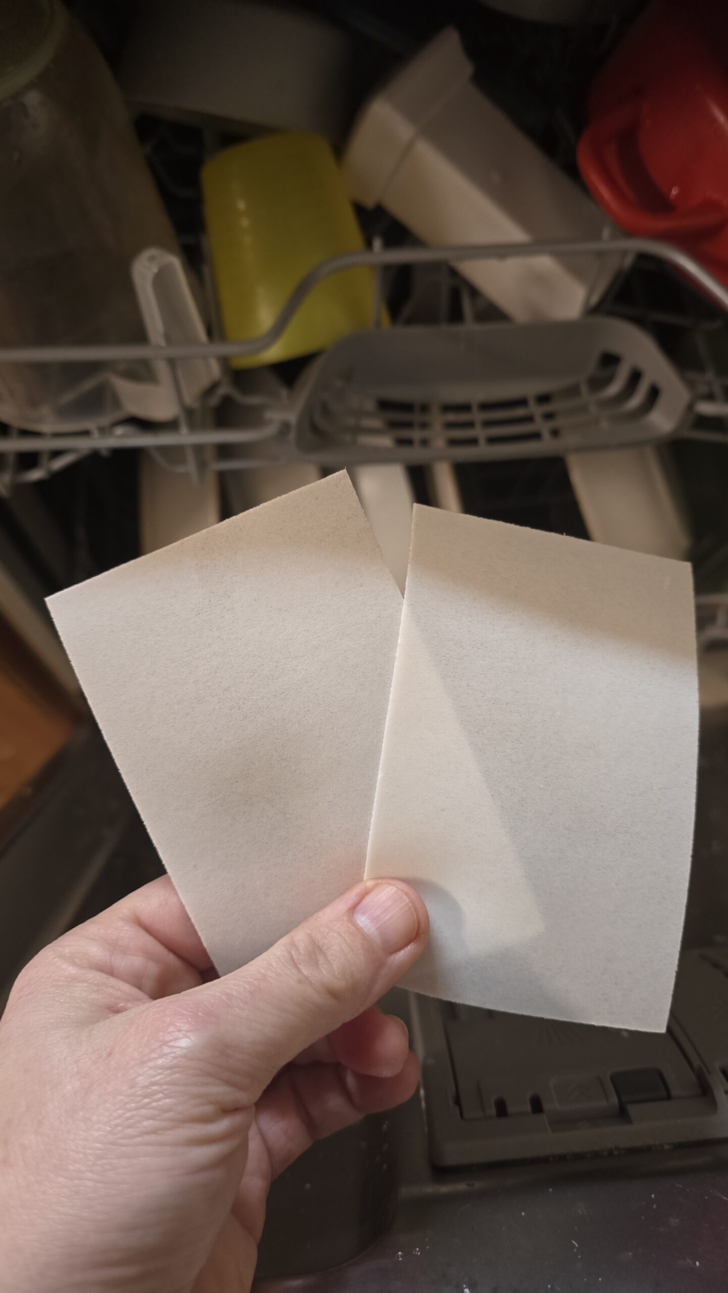 Gépi mosogatás: A hajtogatsd össze (vagy darabold fel) akkorára, hogy beférjen a mosogatótabletta rekeszébe. Adagolás: 1-2 lapka/program.