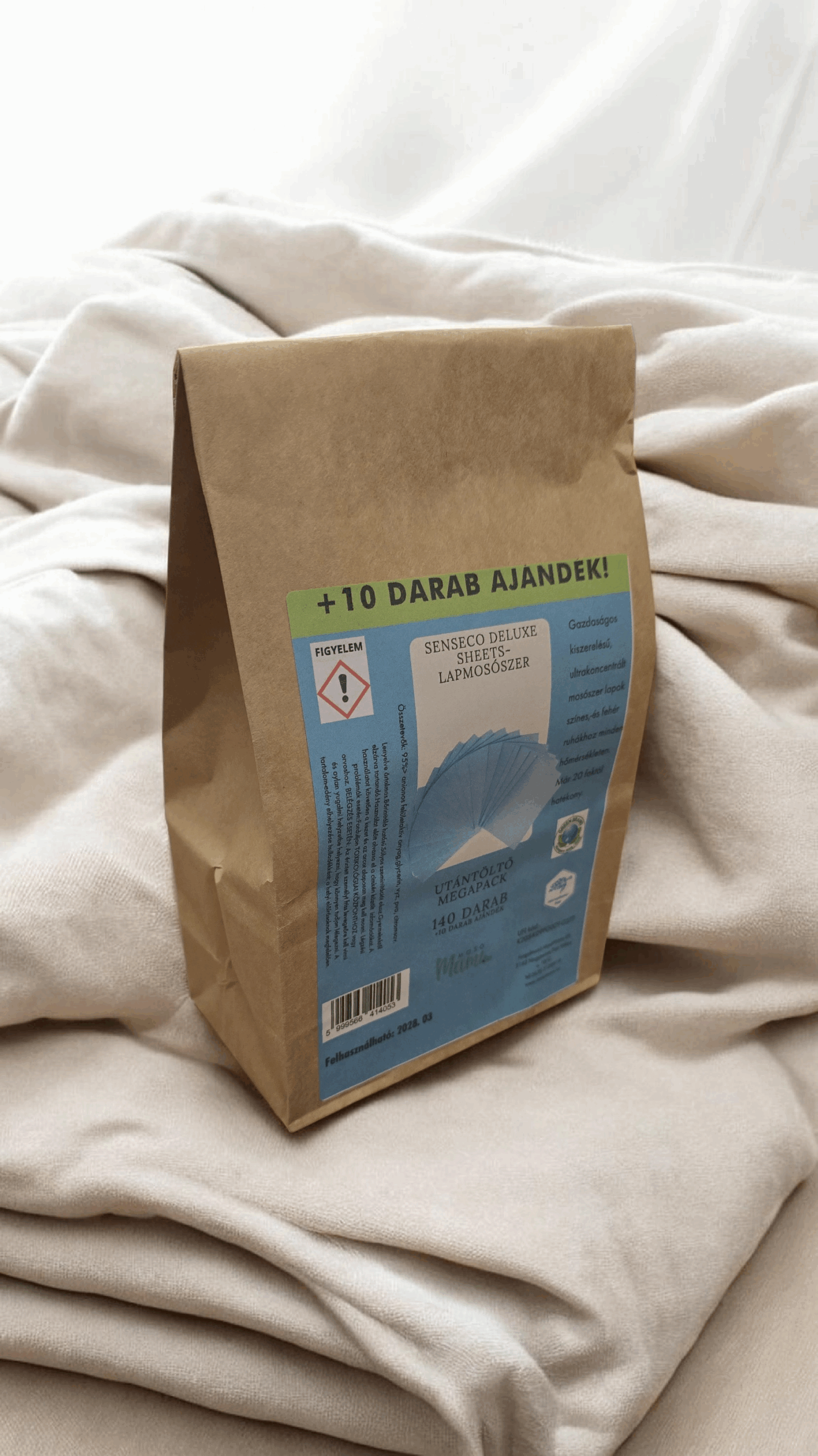 SensEco Deluxe mosólapka 150 db: Te már rutinos mosólapkás vagy, és tudod, hogy milyen praktikus ez a termék. Legyen szó gépi,-vagy kézi mosásról, vagy mindennapi tisztításról akár utazás során is. Ezzel a Megapack-kal hónapokra letudod a mosószer vásárlást! Illatos és illatmentes változatban, mely fehér és színes ruhákhoz is megfelelő, sőt, selyem és gyapjú ruhanemű  esetén is tökéletes. Forradalmi újítás az egyszerűen hatékony, környezetbarát mosásban.