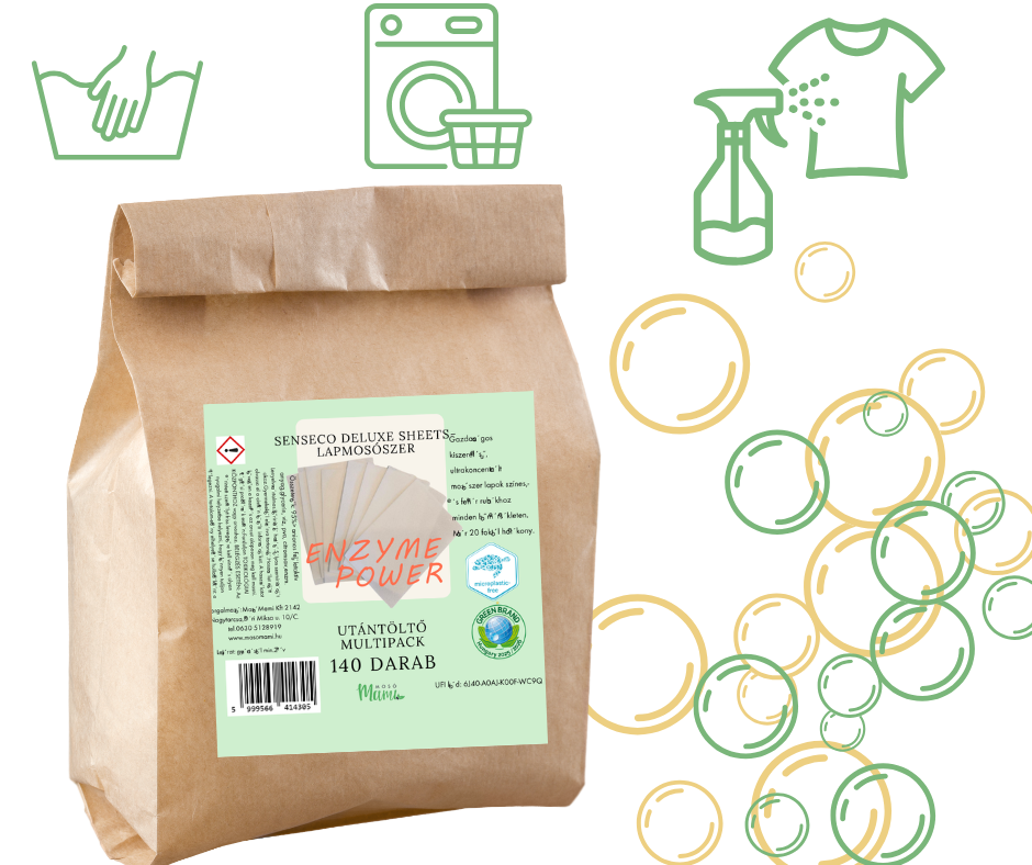A technológia német védjegy oltalom alatt állt 2010 óta, utána terjedt el a világban. SensEco mosólapka termékünk magyar FELDOLGOZÁSÚ, mely több munkaerőt igényel,mint maga a lapocsák legyártása. Az alap hozzánk vasúton érkezik, mely környeztbarát.