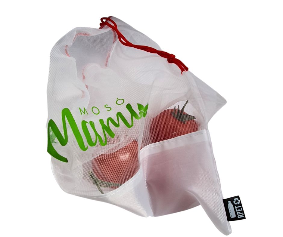Újrahasznosított PET palackból készült zöldséges tároló tasak.